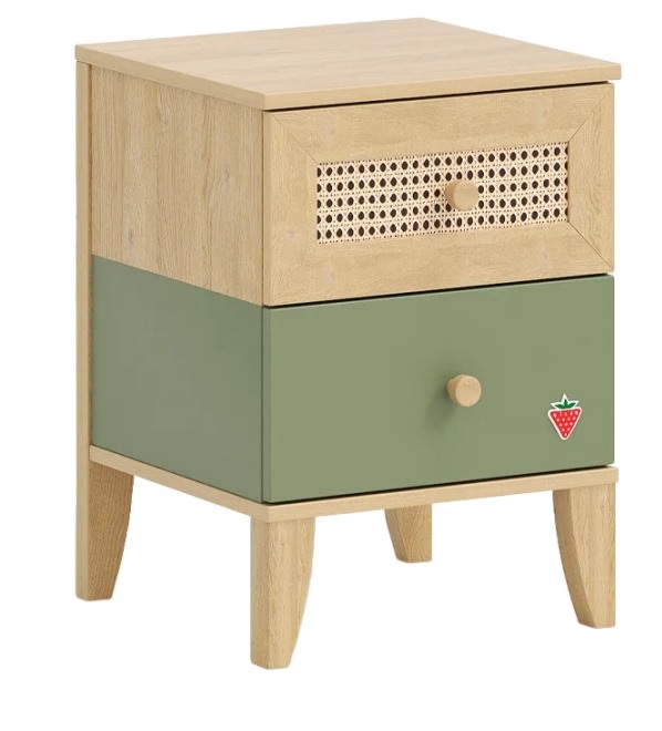 Der Loof Nachttisch besticht durch seine elegante Holzoptik und die praktischen Schubladen mit Soft-Close-System. Dieses Möbelstück verbindet Funktionalität und Ästhetik und bietet Platz für alles, was in der Nähe des Kinderbettes griffbereit sein muss. Die olivgrüne Schublade verleiht dem Nachttisch von Cilek einen modernen Touch und das passt perfekt in ein Scandi-Boho-Kinderzimmer. Es ist also die perfekte Ergänzung zu einem ruhigen und stilvollen Raum.