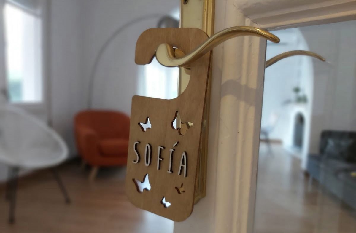 TIPP: Bei Panda Kindermöbel finden Sie hölzernes, personalisiertes Namensschild mit mit selbstklebenden Buchstaben. Dieser Türhänger von Vintiun ist perfekt zum Anbringen auf dem Türknauf.